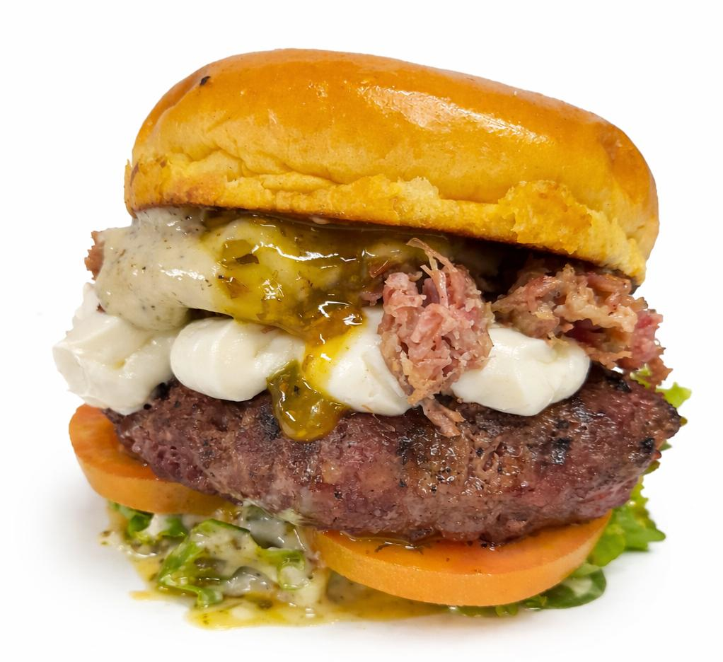 Pão brioche, 1 hambúrguer de 150g (carne artesanal), cream cheese, cupim desfiado, tomate, alface e molho especial da casa + batata P + refrigerante lata.