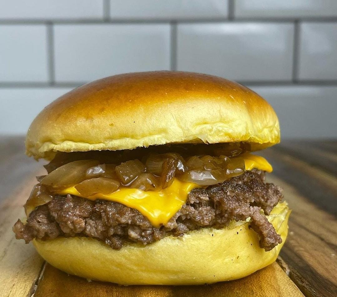Pão brioche, hambúrguer de 100g, queijo cheddar derretido, cebola caramelizada no shoyu, molho especial e salada.
